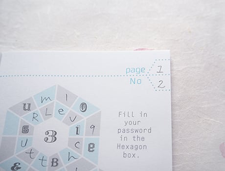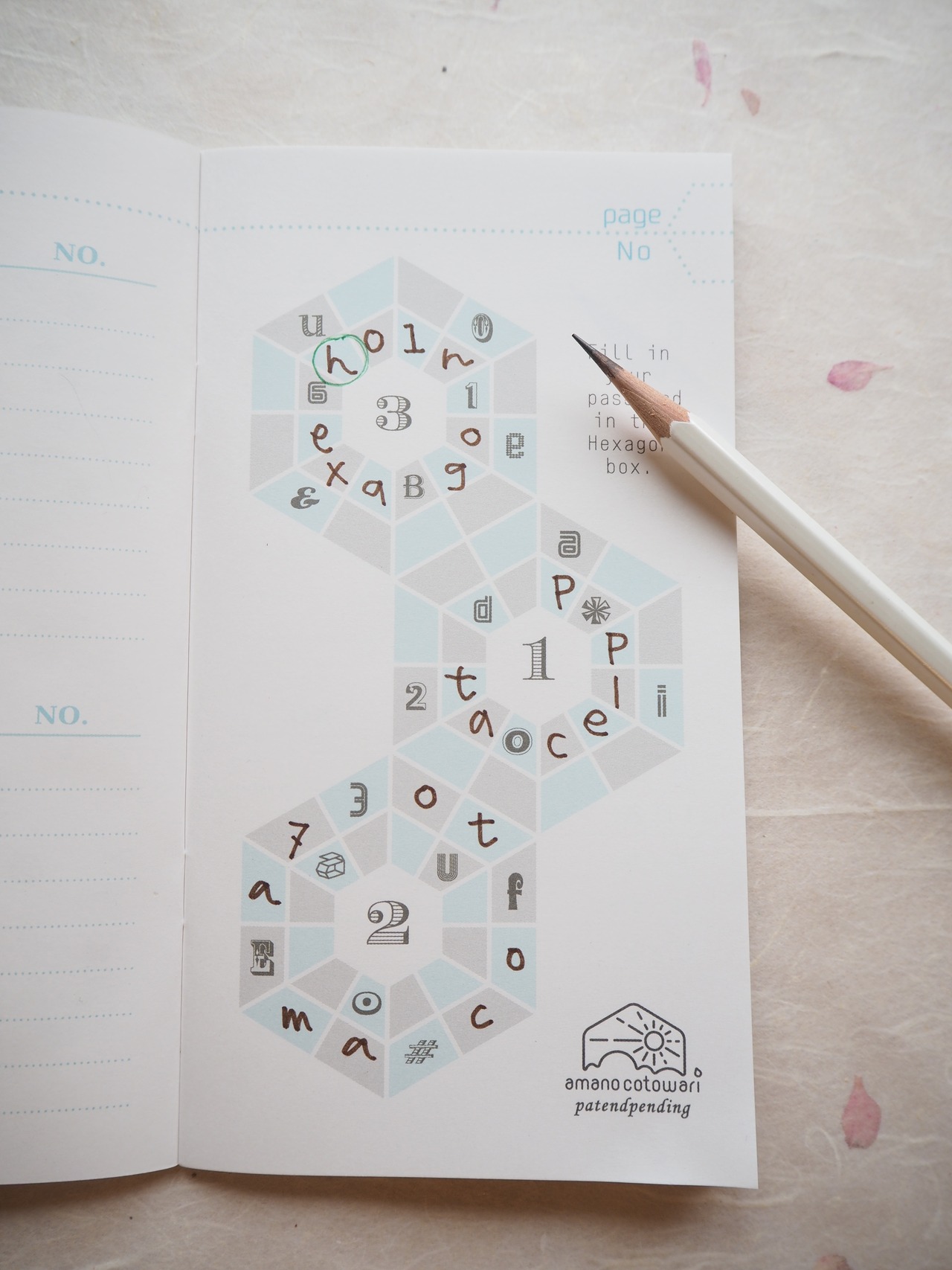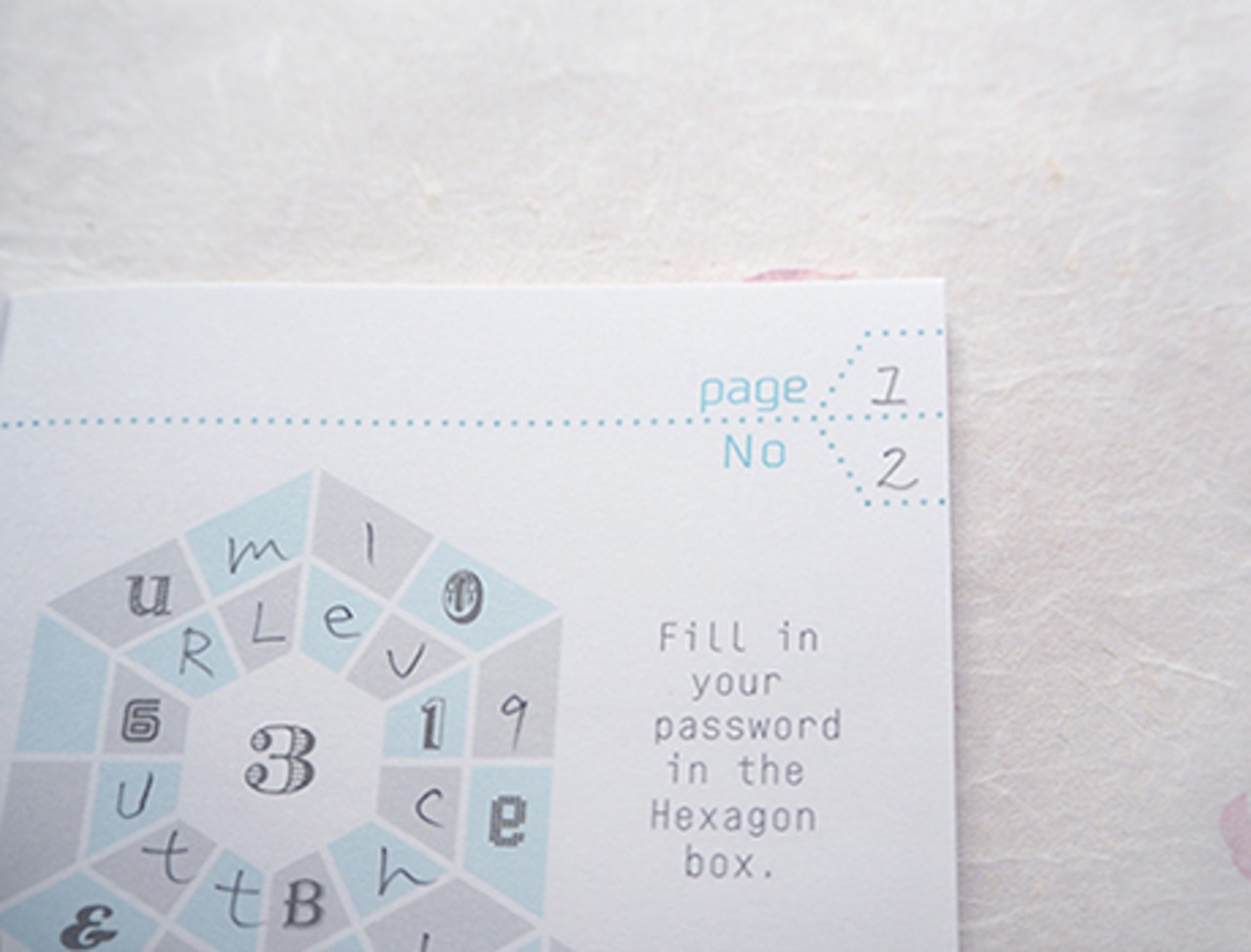 左側にアカウント情報、右側に隠したいパスワードを六角形の中に書き込んでいきます