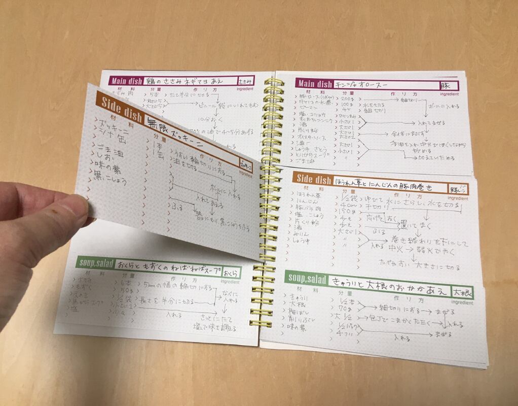 このノートはメニューを3段に分け書き、後からめくって、選べる、便利なアイテムです。